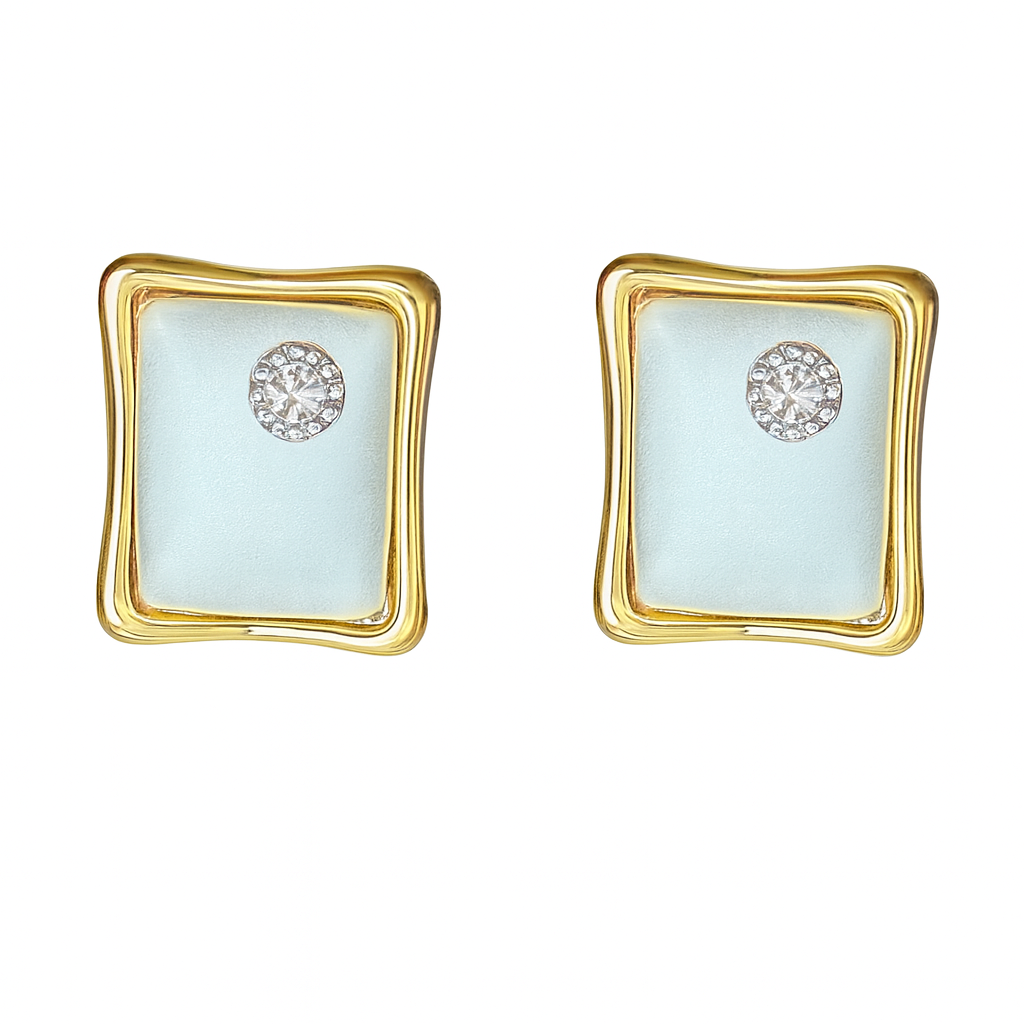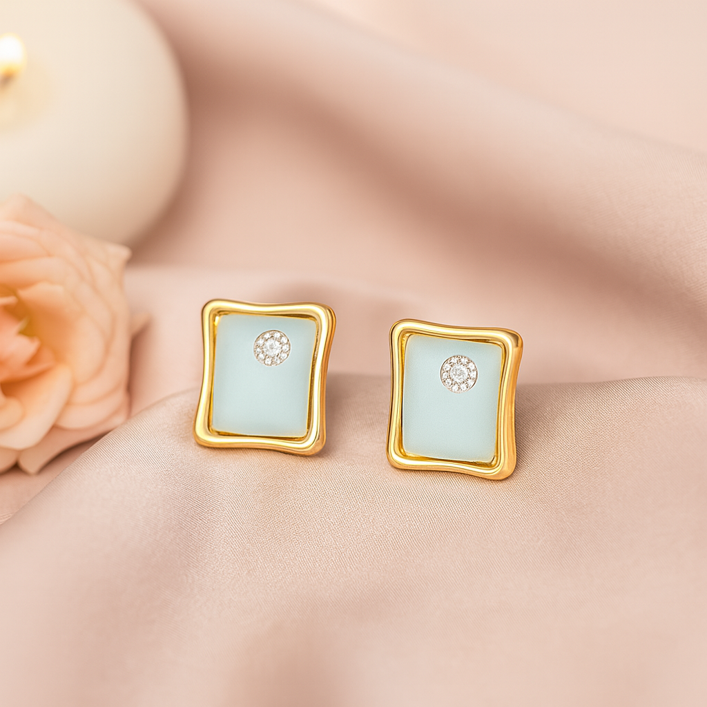 Be the first to review “Anti-Tarnish Rectangular Gold Frame Earrings with Sparkling Stone | Charmiq”
